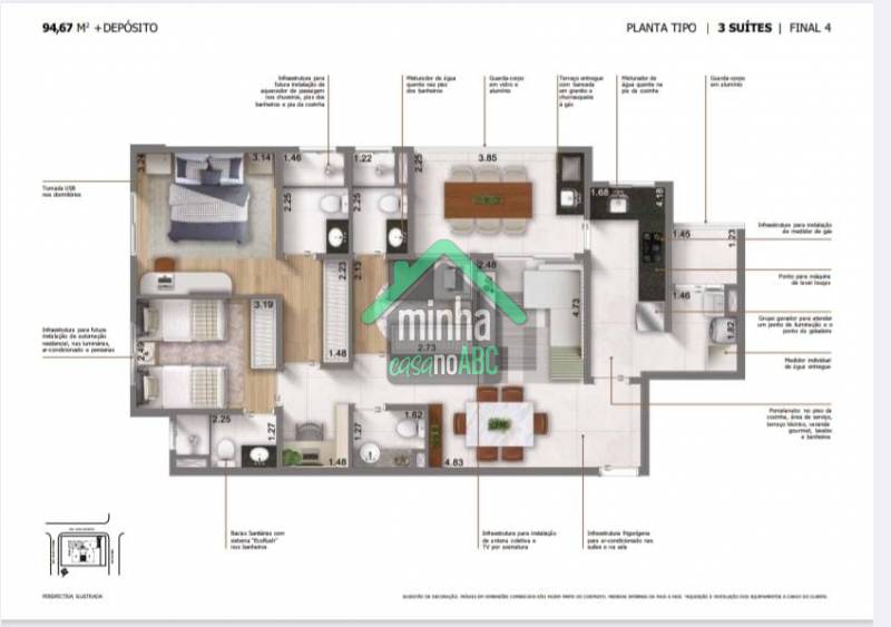 Apartamento à venda - Motiró Barcelona - com 3 dormitórios (sendo 3 suítes) 4 banheiros 2 vagas na garagem 96 m2 de área útil no bairro Barcelona Região do ABC - São Caetano do Sul - SP