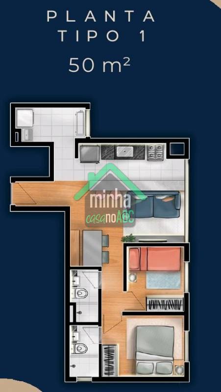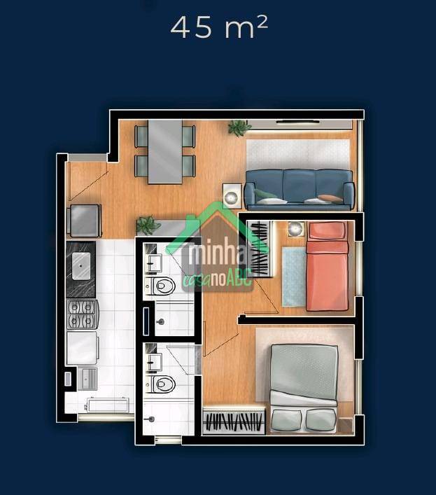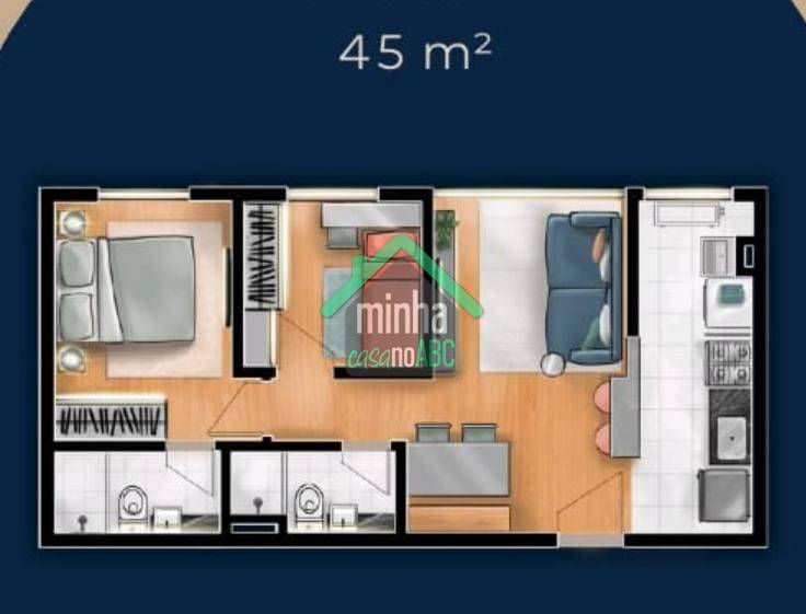 Apartamento à venda - Lisboa - com 2 dormitórios (sendo 1 suíte) 2 banheiros 1 vaga na garagem 50 m2 de área útil no bairro Jardim Bela Vista Região do ABC - Santo André - SP
